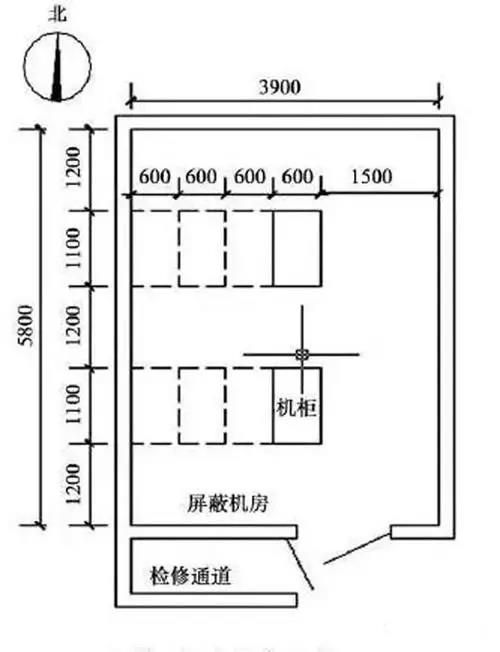 除此之外,還需要考慮預(yù)留施工防護(hù)空間,并盡量避免調(diào)整現(xiàn)有機(jī)房管路和屏蔽門體位置。以圖1為例,在同等條件下,應(yīng)該優(yōu)先考慮將機(jī)房向東側(cè)和北側(cè)擴(kuò)展。因?yàn)槟蟼?cè)是機(jī)房屏蔽門體和檢修通道,向南擴(kuò)展需要將其拆除后重新安裝,施工難度較大,特別是屏蔽門體本身是屏蔽機(jī)房最重要的防護(hù)部位,一旦重新安裝后屏蔽效果降低,會(huì)對(duì)機(jī)房整體屏蔽效能產(chǎn)生較大影響。如果向西側(cè)擴(kuò)容,擬拆的墻體緊貼機(jī)柜,在實(shí)施過程中缺少施工作業(yè)面,不利于對(duì)現(xiàn)有設(shè)備的防護(hù)。因此,在制定擴(kuò)容方案時(shí)需要綜合考慮各種因素,在滿足建設(shè)目標(biāo)的前提下,盡可能減少投資,降低實(shí)施難度。