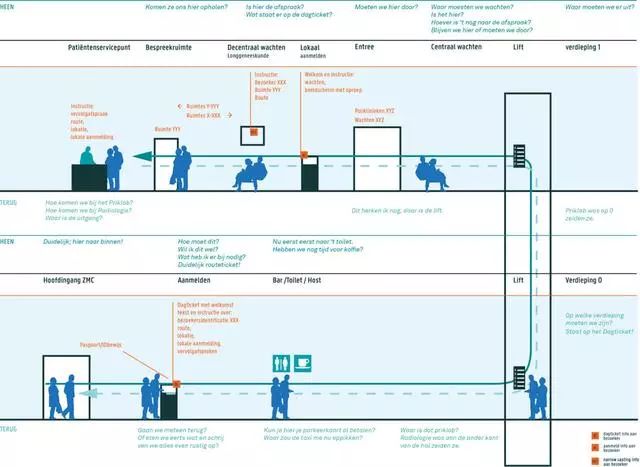 為了解決這個(gè)問題,Zaans Medisch Centrum設(shè)計(jì)團(tuán)隊(duì)從醫(yī)院入口到內(nèi)部,全程做好導(dǎo)視標(biāo)牌的點(diǎn)位布置。
